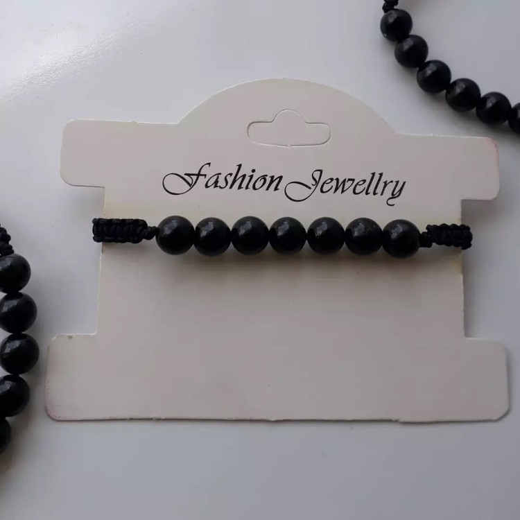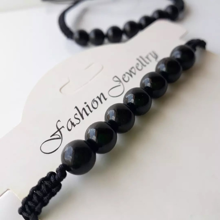 دستبند تورمالین سیاه اقتصادی بافت گره کشویی فری سایز مناسب هر سایز مچ