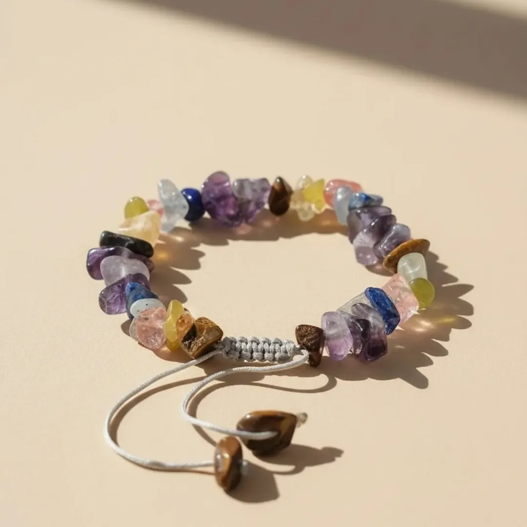 دستبند سنگی ترکیبی (آمیتیست_رزکوارتز_شاه مقصود_سیترین_چشم ببر_لاجورد)