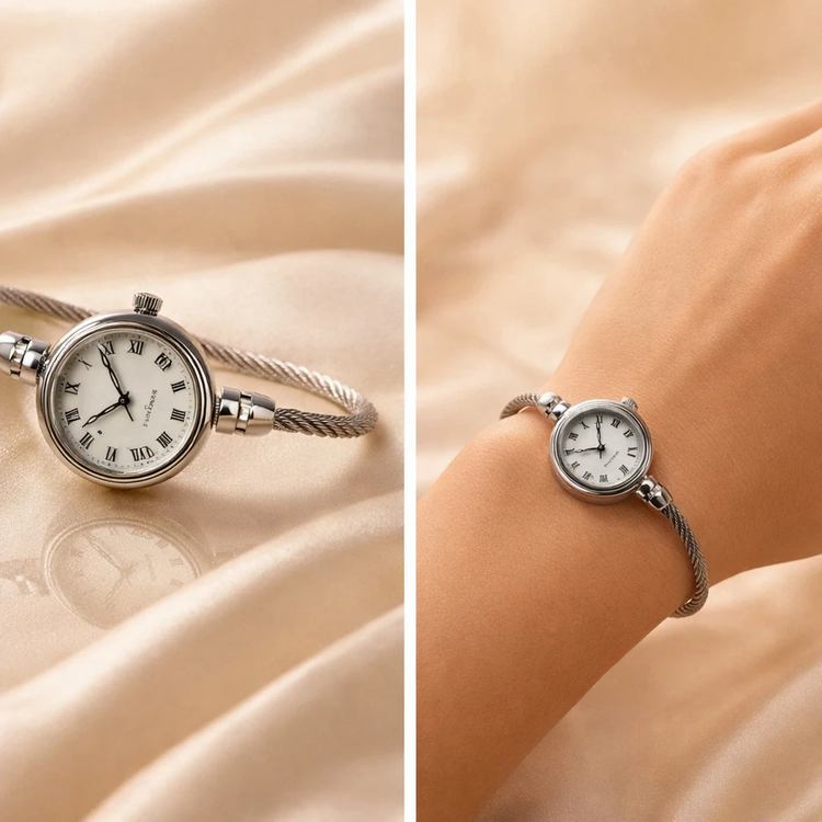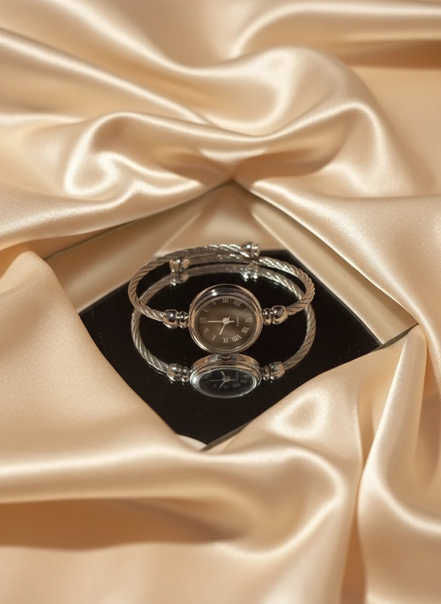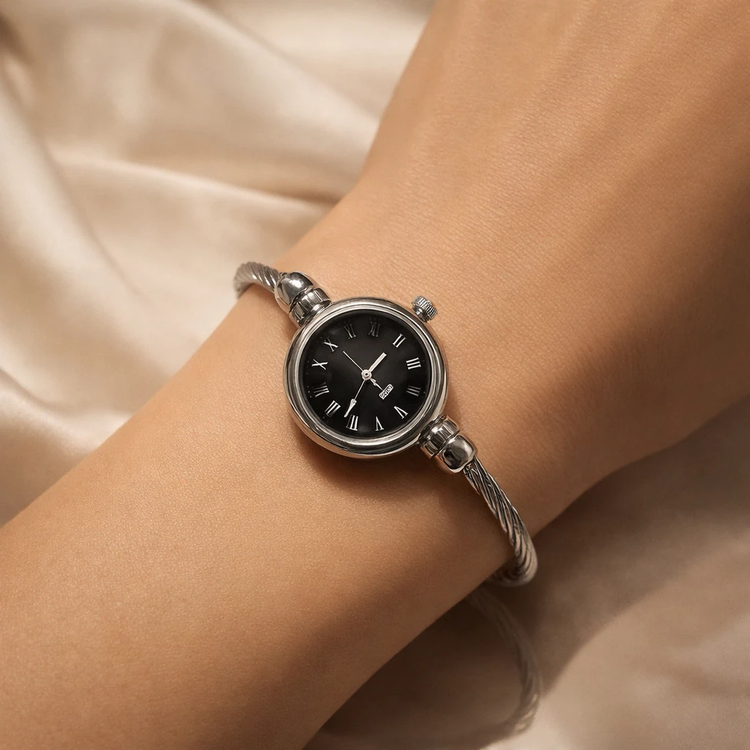 ساعت بنگلی/کاملا فری سایز و مناسب هرسایز مچی(منعطف است)/باتری دارد/باتری وموتور قابل تعویض/ضدحساسیت/بک استیل