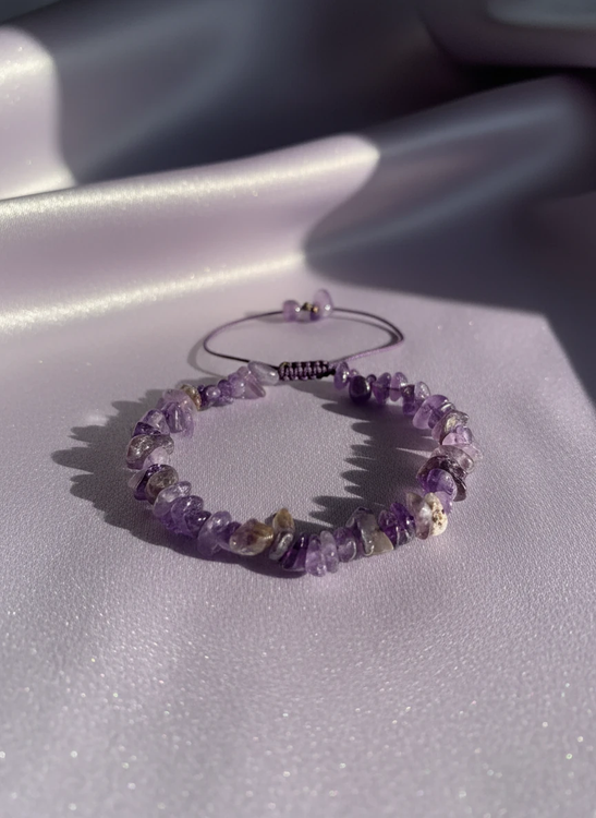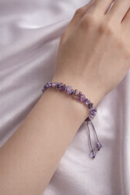 دستبندی با تراشههای طبیعی آمتیست که هر دونهش حالوهوای خاص خودشو داره؛