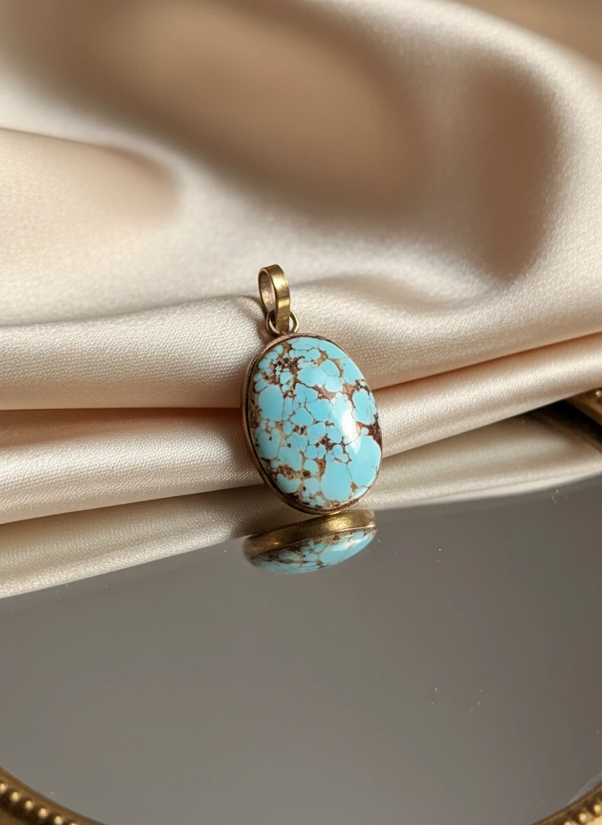 گردنبند فیروزه نیشابور، یکی از باارزشترین جواهرات دستساز ایرانی، با سنگ فیروزه اصل و جلوهای بینظیر. این گردنبند زیبا دارای قاب نقره با طراحی خاص و سنتی است که نمای هر استایلی را تکمیل میکند.